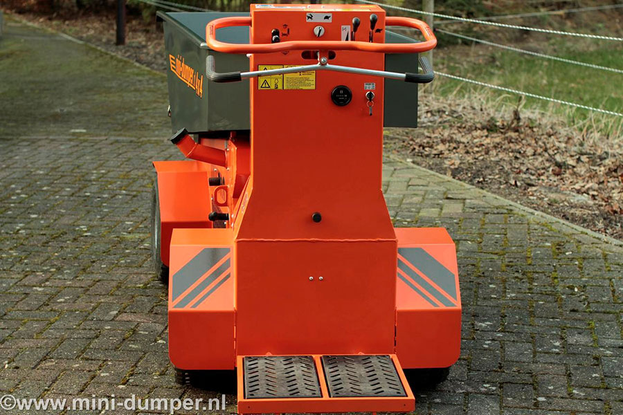 Het is een in Denemarken ontwikkelde machine. Deze knikdumper is uitgerust met vier luchtbanden, waardoor er geen schade wordt aangebracht aan de ondergrond door de schranken van de rupsen.